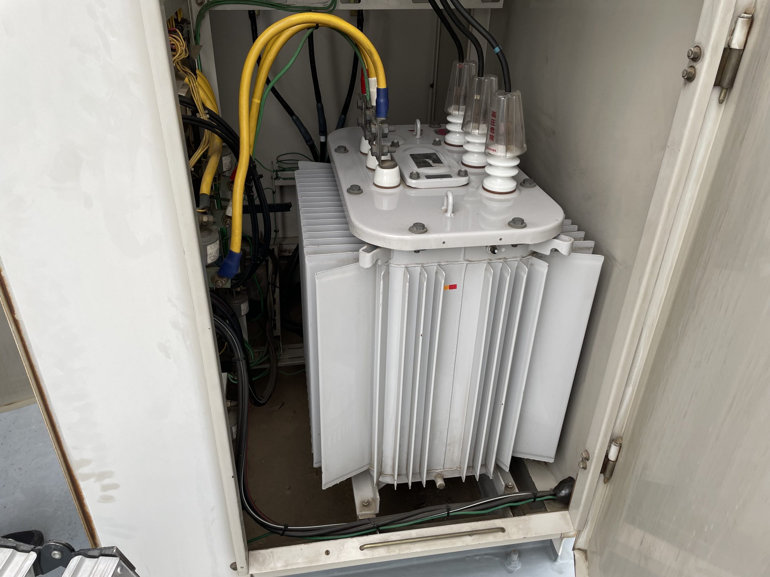 キュービクル内の変圧器2台とコンデンサ1台のPCB検査を実施致しました。